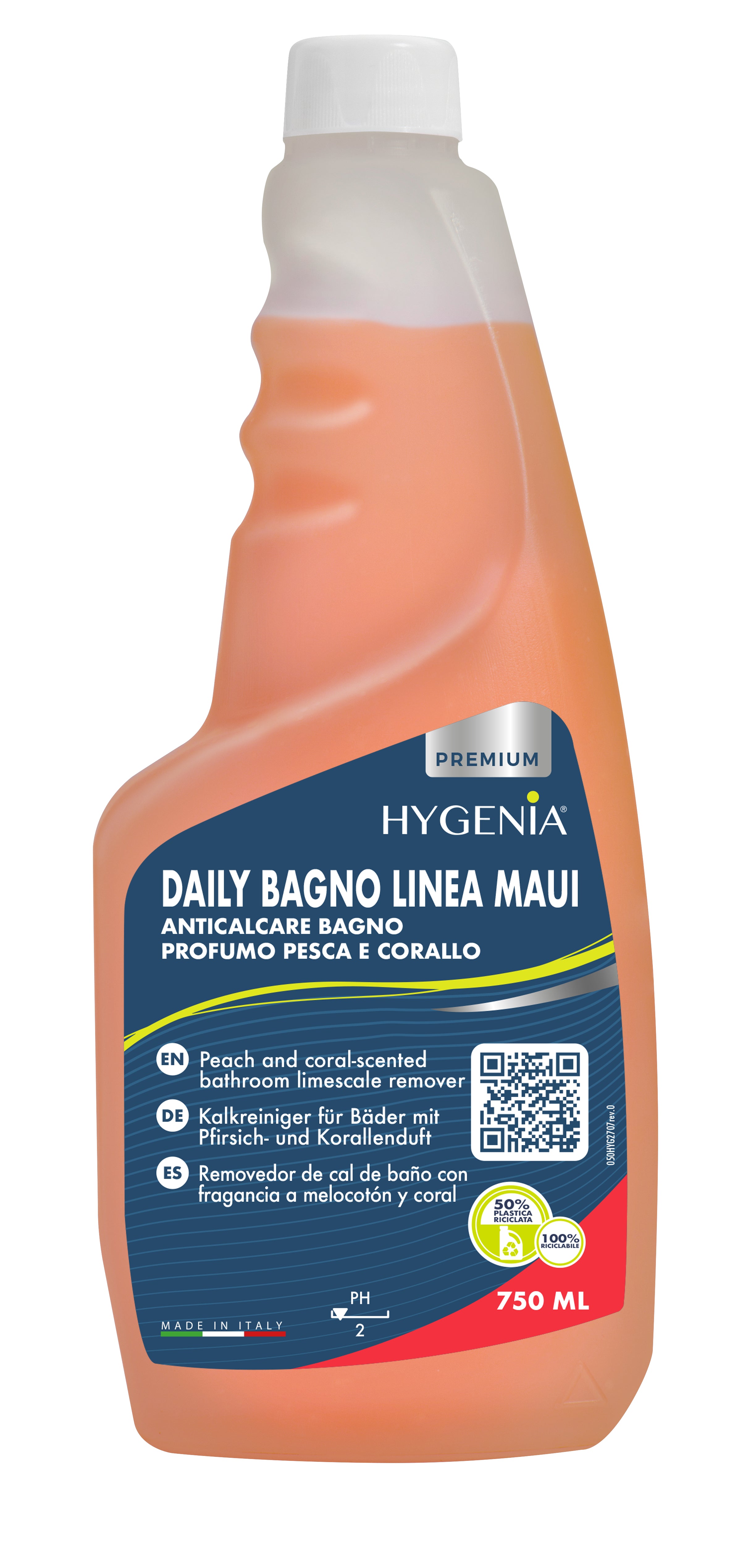 Detergente profumato a base di acido citrico. Liquido anticalcare che pulisce e disincrosta efficacemente tutte le superfici del bagno resistenti agli acidi.